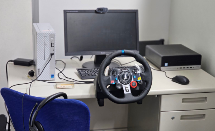 木製のドアと緑の床が、温かみと落ち着きのある空間を作り出し、集中力を高めながらもリラックスできる環境です。